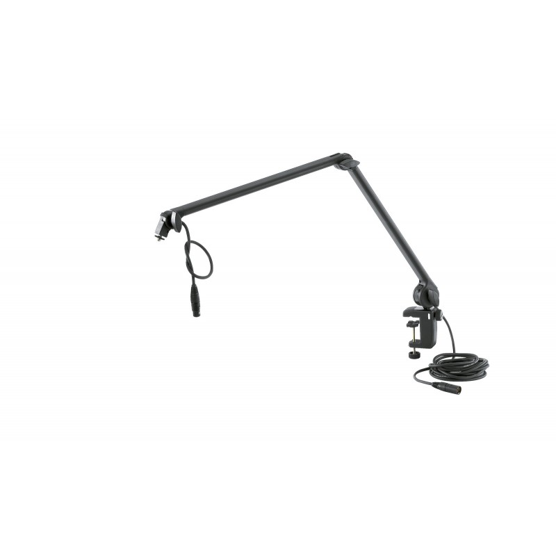 Stolní mikrofonní rameno se závitem 3/8" nebo 5/8" v moderním designu pro zvuková studia a multimediální pracoviště. Rameno má upínací rozsah 53 mm. Je vhodné pro mikrofony do 1,5 kg. Dodává se včetně 6 m dlouhého XLR3 kabelu. Prodloužená záruka 5 let.