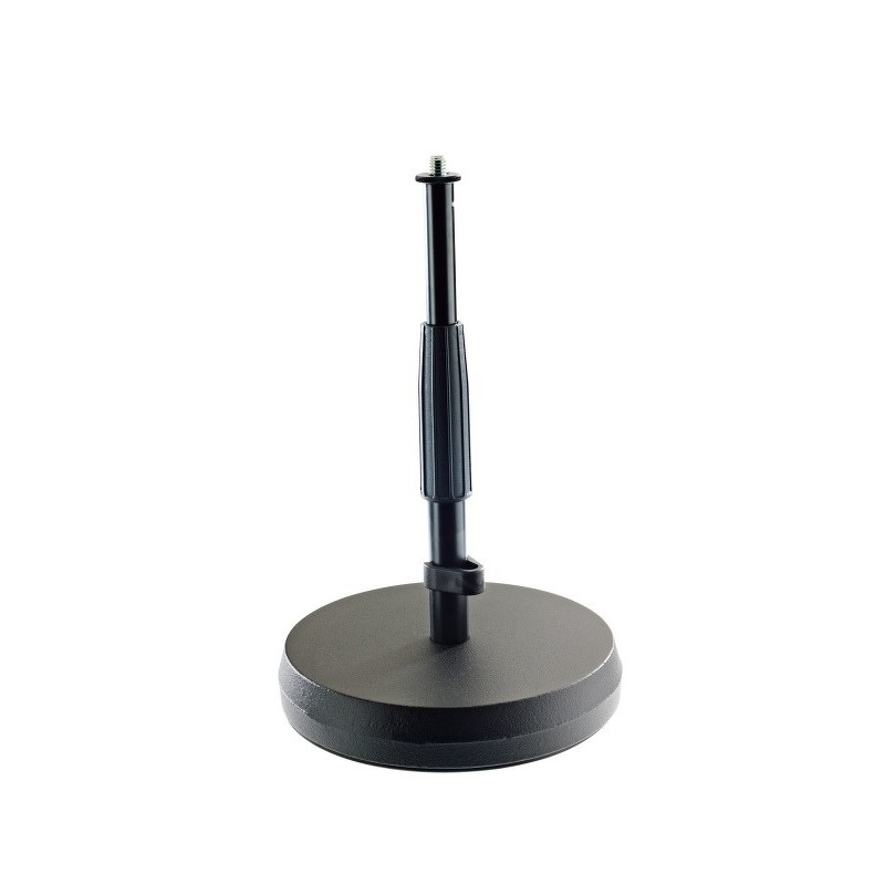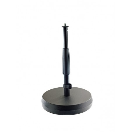 Nízký mikrofonní stojan s malou litinovou základnou. Hodí se pro snímání perkusí nebo kytarových a basových aparatur. Litinový podstavec o průměru 180 mm má antivibrační gumovou vložku. Výška 217/347 mm. Vyrábí se v černé barvě. Prodloužená záruka 5 let.