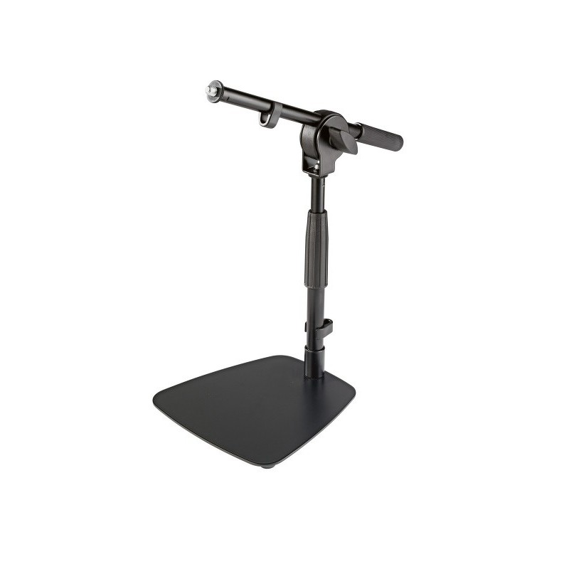 Stabilní ocelový mikrofonní stojan s širokým použitím - jako stolní stojan při živém vysílání a na konferencích nebo jako podlahový stojan na koncertech např.pro snímání kytarového komba. Gumové nožičky redukují přenos nežádoucích zvuků. Výška 285/400 mm. Délka otočného ramene 310 mm. Rozměry podstavce 200 x 200 mm. Vyrábí se v černé barvě. Prodloužená záruka 5 let.
