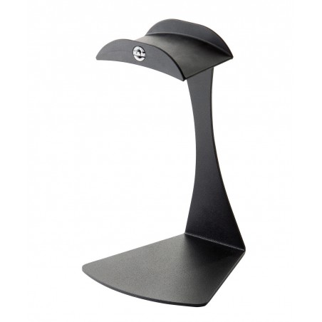 Stabilní stolní stojánek na sluchátka v nepoškozeném stavu, natržený papírový obal. K dispozici je 1 kus v černé barvě.