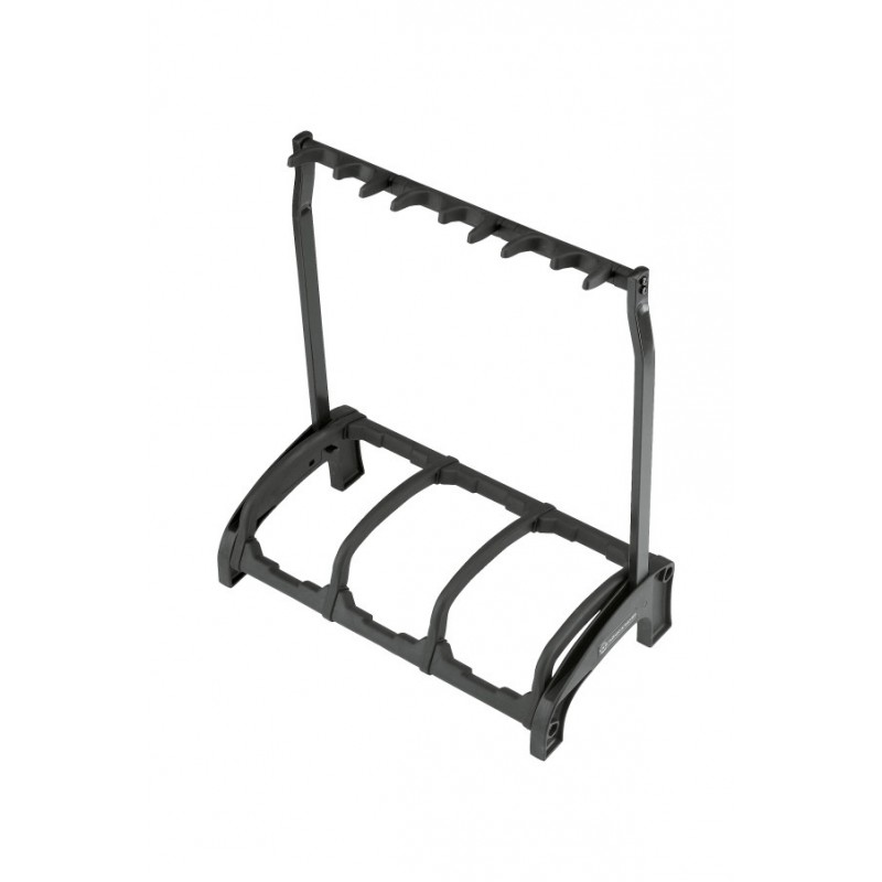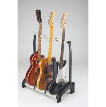 Kytarový stojan »Guardian 3« pro umístění 3 akustických nebo elektrických kytar nebo baskytar. Ideální pro použití ve studiu, na pódiu, v obchodě nebo doma. Ochranné lišty zabraňují nechtěnému pohybu či nárazům kytar, měkké podložky z vysoce kvalitního termoplastického elastomeru chrání nástroj proti poškrábání. Inovativní skládací mechanismus použitý u »Guardian« umožňuje snadné přenášení stojanu. Vysoce flexibilní, dělená nosná ramena s integrovanými držáky trsátek umožňují umístění kytary z levé i pravé strany aniž by se struny vedlejší kytary dotýkaly. Rozměry podstavce 626 x 335 mm. Výška 700 mm. Hmotnost 3,5 kg. Vyrábí se v černé barvě (17513 Bk) a v černé barvě s průsvitnými ochrannými prvky.
