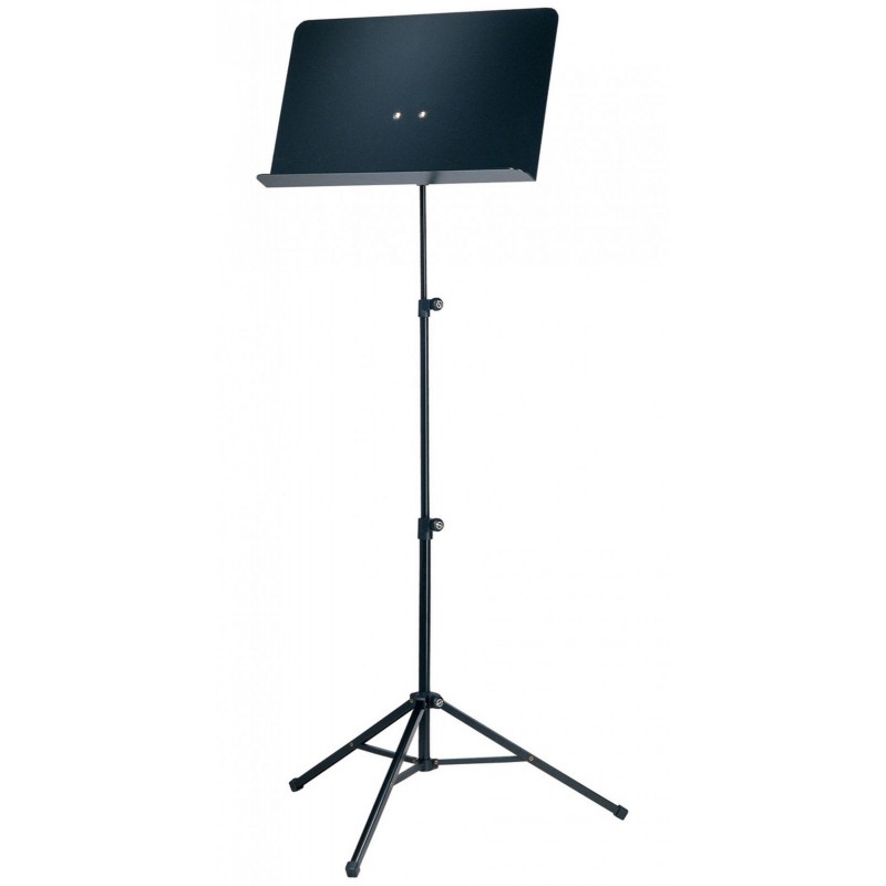 Profesionální ocelový notový pult s lehkou hliníkovou deskou. Přesné připevnění desky pomocí V-bloku. Výška 555/1190 mm. Rozměry desky 480 x 300 mm. Vyrábí se v černé barvě. Prodloužená záruka 5 let.