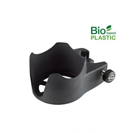 Držák na nápoje z bioplastu »BIOBASED«. Držák se připevňuje na stojan o průměru 11 - 30 mm pomocí závitového šroubu. Je určený pro nádoby s průměrem až do 95 mm. Vyrábí se v černé barvě. Prodloužená záruka 5 let.