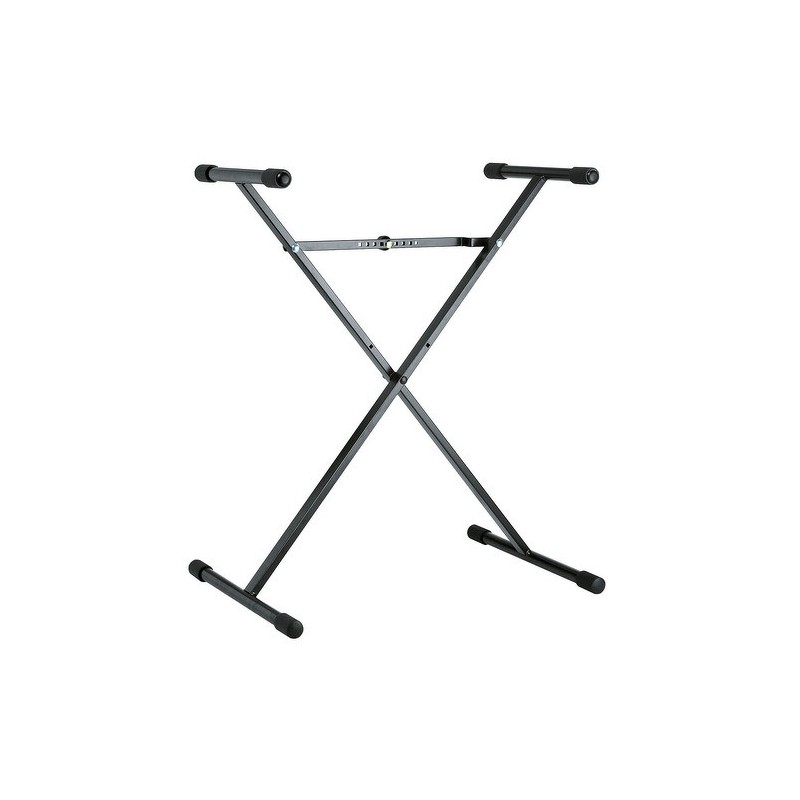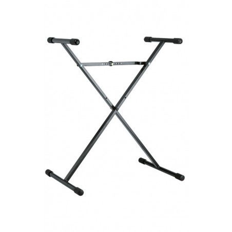 Ocelový X stojan na klávesy pro začátečníky. Snadné a rychlé nastavení výšky. Trubková konstrukce, matný černý povrch. Výška stojanu 400/905 mm. Nosnost 50 kg. Nosná ramena jsou opatřena koncovkami proti poškrábání kláves. Vyrábí se v černé barvě. Prodloužená záruka 5 let.
