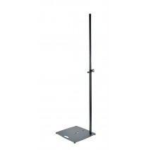 Nastavitelná výška od 1 420 do 2 420 mm v 5 krocích po 200 mm. Osvědčený aretační šroub K&M a robustní pojistný čep zajišťují bezpečné upevnění. Integrovaný závit M10 umožňuje uchycení traverzy nebo přímou montáž světel. Maximální centrální nosnost při plném vysunutí je 30 kg.
