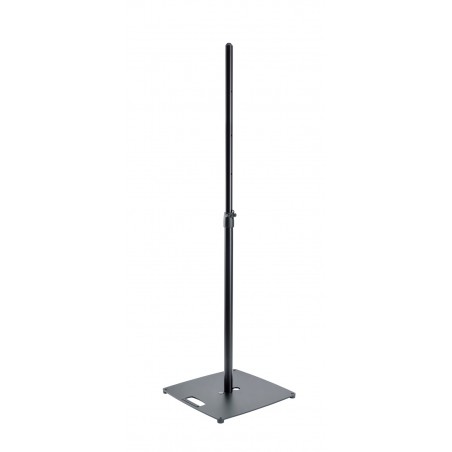 Kompaktní stojan na reproduktor s plochou základnou 489 x 489 mm, nastavitelnou výškou 1110/1810 mm, integrovaným vedením kabelů a nosností až 35 kg. Ideální do malých prostor.