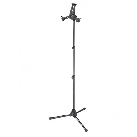 Výsuvný stojan s držákem na tablet pro použití ve studiu, na pódiu nebo doma. Výška stojanu 700/1550 mm. Individuálně nastavitelná opěrná ramena pro tablet s výškou 102/189 mm a šířkou 163/242 mm. Hloubka tabletu 6/11 mm. Vyrábí se v černé barvě.