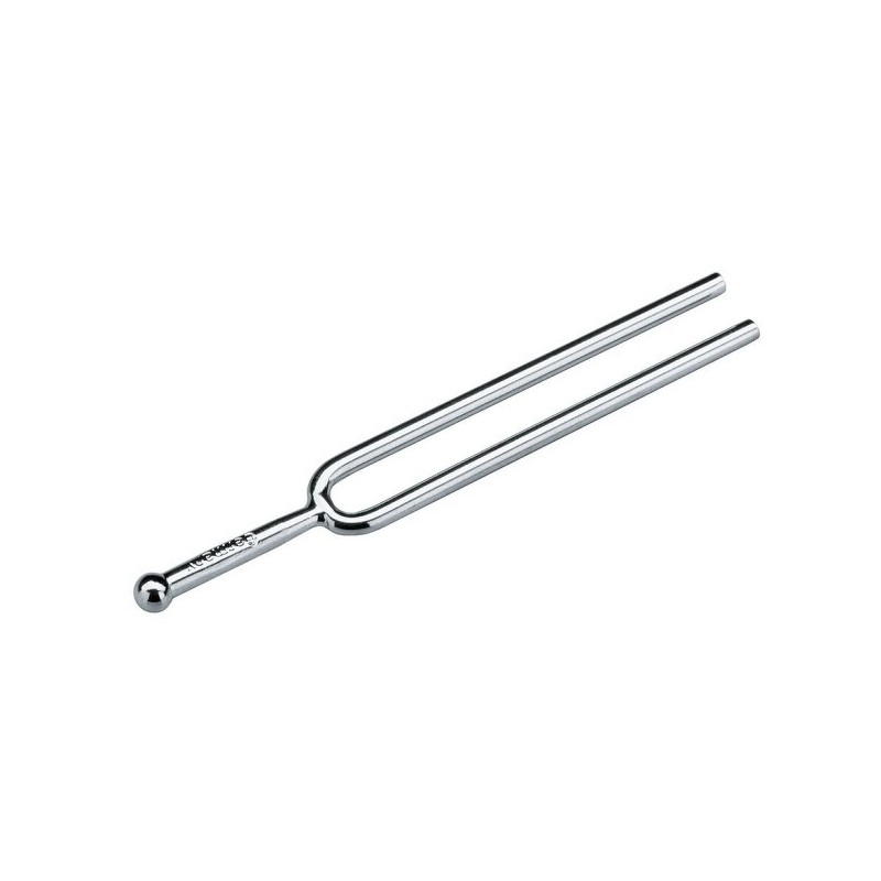 Kulatá ocelová ladička. Vibruje 440krát za sekundu a dosahuje středního tónu A (ladění A 440 Hz).