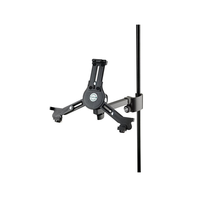 Univerzální držák pro tablet/iPad se snadným a rychlým uchycením k jakémukoliv stojanu s průměrem do 30 mm. Pro tablety a iPady výšky 128/232 mm a šířky 222/334 mm. Vyrábí se v černé barvě.
