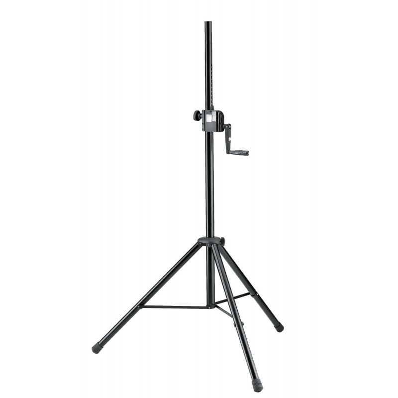 Vysoce kvalitní výsuvný ocelový reproduktorový stojan s nosností 40 kg. Plastové spojovací díly. Výška stojanu 1385/2180 mm. Nastavení výšky pomocí kliky a zajištovacího šroubu. Výsuvná tyč s integrovaným závitem M10 pro reproduktory a ramena na světla. Vyrábí se v černé barvě. Prodloužená záruka 5 let.