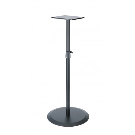 Ocelový velice stabilní výsuvný reproduktorový stojan s širokým kulatým litinovým podstavcem. Výška stojanu 950/1450 mm, průměr podstavce 450 mm. Nosnost stojanu 35 kg. Nastavení výšky pomocí upevňovacího šroubu a zajišťovacího kolíku. Připojení reproduktoru/monitoru se závitem 3/8 " (délka závitu 12 mm). Rozměry plochy pro reproduktor/monitor 205 x 245 mm. Určené pro monitory Genelec 1030 nebo monitory od jiných výrobců. Obsahuje 4 závitové body a 4 gumové podložky. Vyrábí se v černé barvě. Prodloužená záruka 5 let.