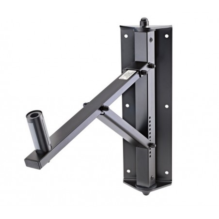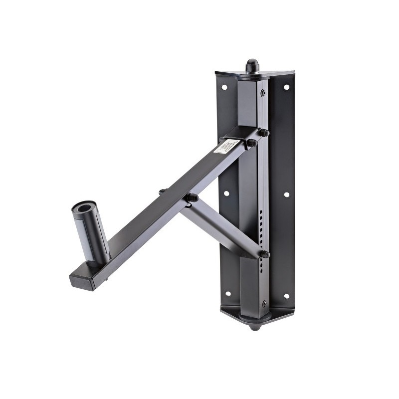 Otočný a sklopný reproduktorový nástěnný držák. Vyrobený z oceli. Nosnost 50 kg. Držák má 11 různých nastavení sklonu pohybujících se po 22°. Otočný čep je nastavitelný do libovolného úhlu. Patentované ložiskové ukotvení pro eliminaci rezonance. Pro reproduktory s vnitřním průměrem od 35 do 37 mm. Vyrábí se v černé barvě. Prodloužená záruka 5 let.