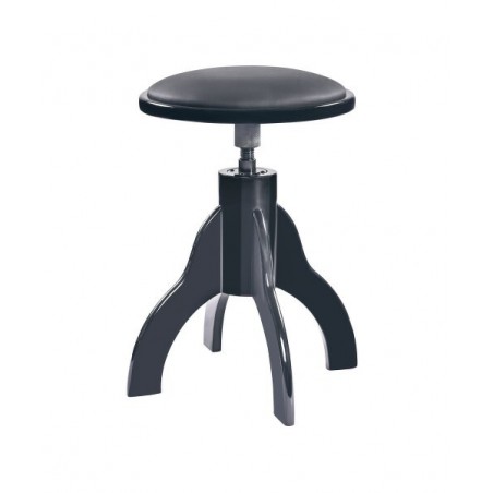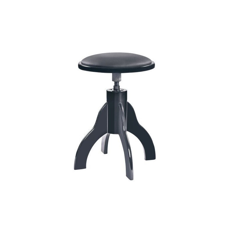 Praktická kvalitní klavírní stolička z masivního dřeva. Černý lesklý polyesterový lak s černým čalouněním z imitace kůže. Výška 485/625 mm. Prodloužená záruka 5 let.