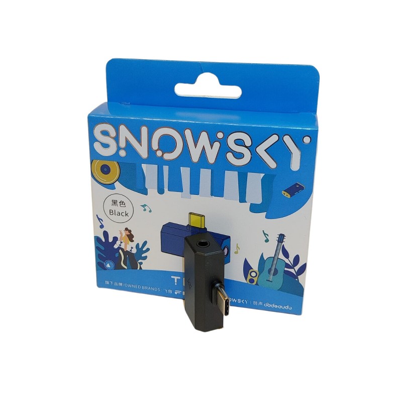 Miniaturní D/A převodník a sluchátkový zesilovač Tiny firmy SNOWSKY, která je dceřinou společností známého výrobce špičkových audiofilních komponentů FiiO. Tiny B dává k dispozici dva sluchátkové výstupy 3,5 jack a 4,4 mm jack. (Bez možnosti USB-C nabíjení dalšího přístroje.)
